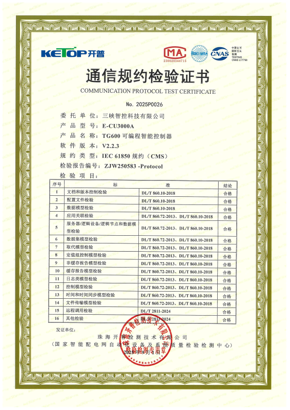 目前,TG系列全国产化智能励磁系统已通过工信部电子五所全国产化认证和代码安全审计、中国电科院型式试验认证、华北电科院涉网性能检测、开普实验室“国家智能电网自动化设备及系统质量检验检测中心”智能电站通信规约(IEC61850)检测。